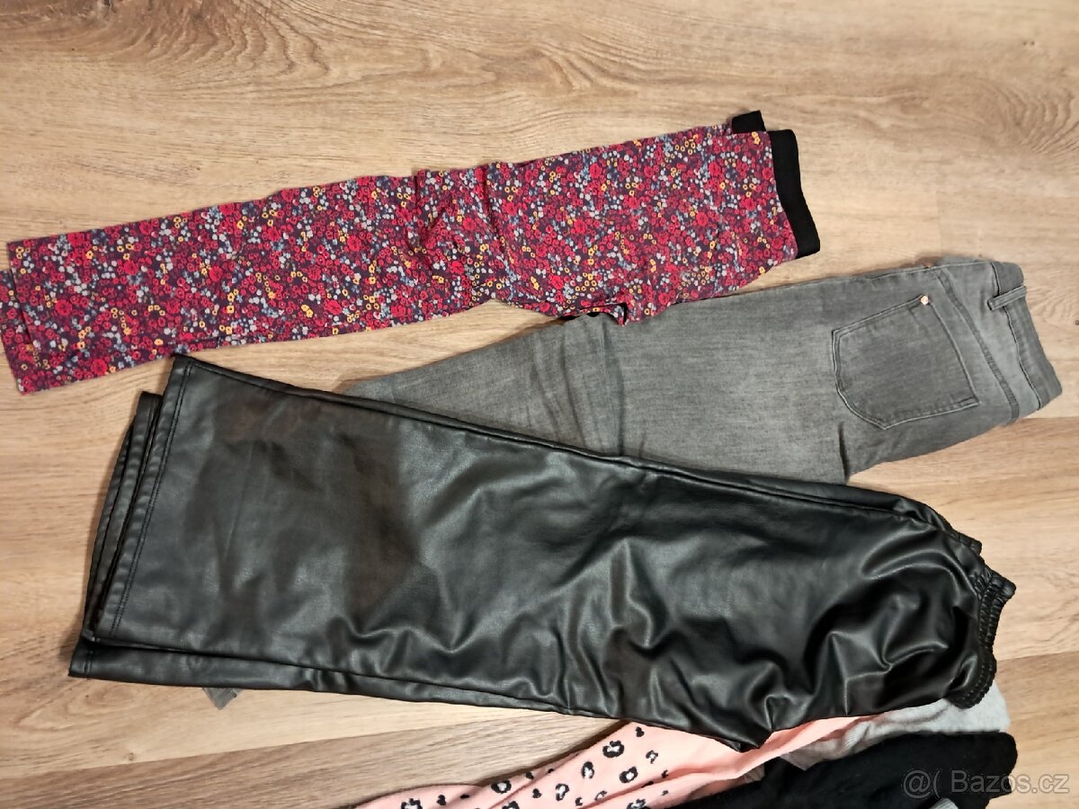 Koženkové kalhoty vel.128/134, leginy 134/140, rifle 146, punčocháče 134. Cena za vše .