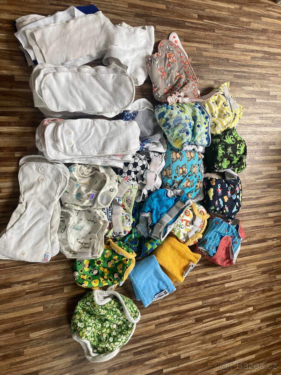 Prodám látkové pleny pro miminka od narození až po 1,5. Jsou tam pleny používané, ale i nové, různé značky - Anavy, Petit Lulu a další. viz obrázek.