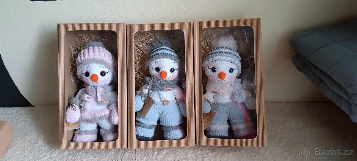 Prodám vlastnoručně háčkovaného sněhuláka, výška 40cm, bezpečnost oči, možno prát, prodám jednotlivě nebo dohromady, možno dodat v krabici s průhledným víkem. Cena uvedena za 1 kus + poštovné, zasílám Zásilkovnou, Balíkovnou