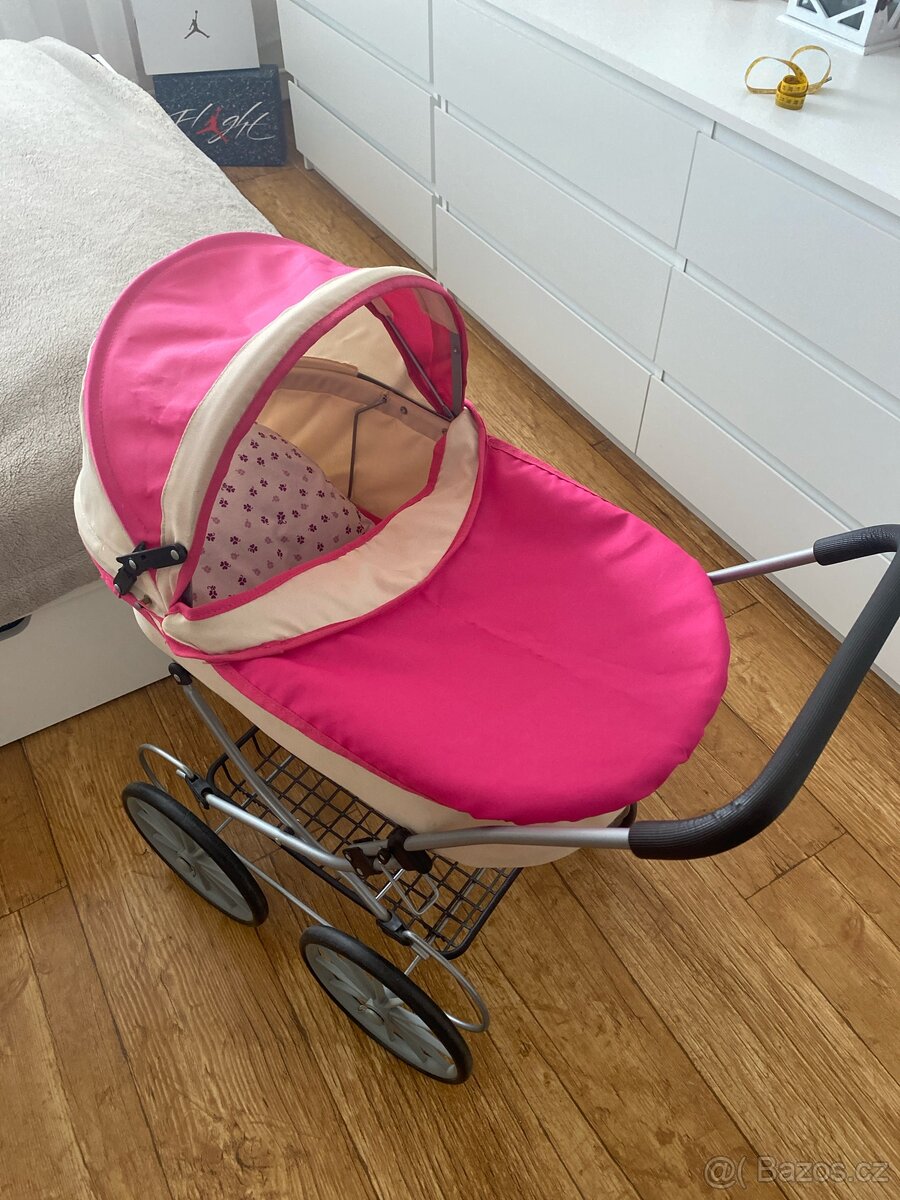 Je ve velmi hezkém stavu – kola jsou v pořádku, korba také. Uvnitř nechám polštářek a deku, které byly šité přímo na tento kočárek.