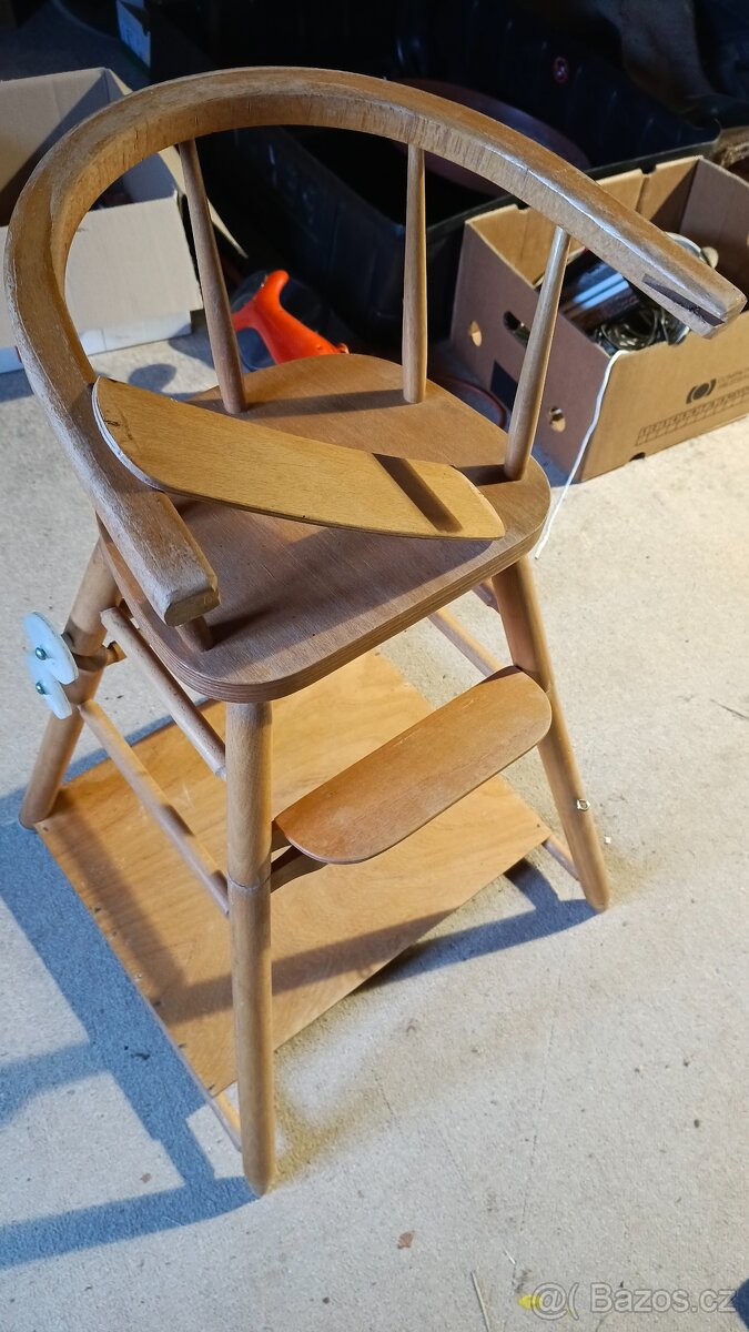 Za 500 kč prodám dřevěnou dětskou rozkládací jídelní židličku. Drobná oprava nutná. Mobil 606662140