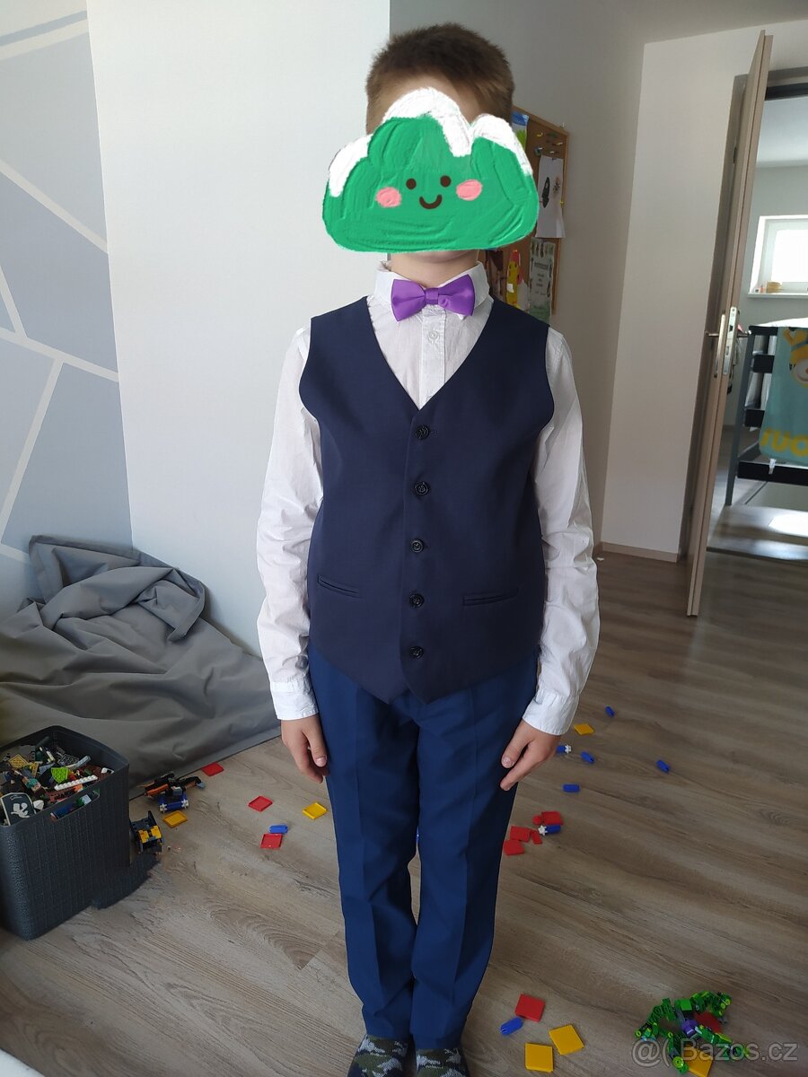 Součástí setu je vesta, kalhoty a motylek v super stavu, vel 152-158. Kosile sice zakoupena nova na svatbu, ale syn upadl a na rukavech flicky, kosili tedy pridam ZDARMA a je součástí prodeje. Zasilkovna 80,-