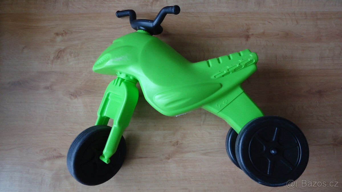- [7.2. 2026]plastové odrážedlo First Bike s košíkem, bubnovou brzdou a zvonkem ve výborném stavu (drobné oděrky, žádná poškození).