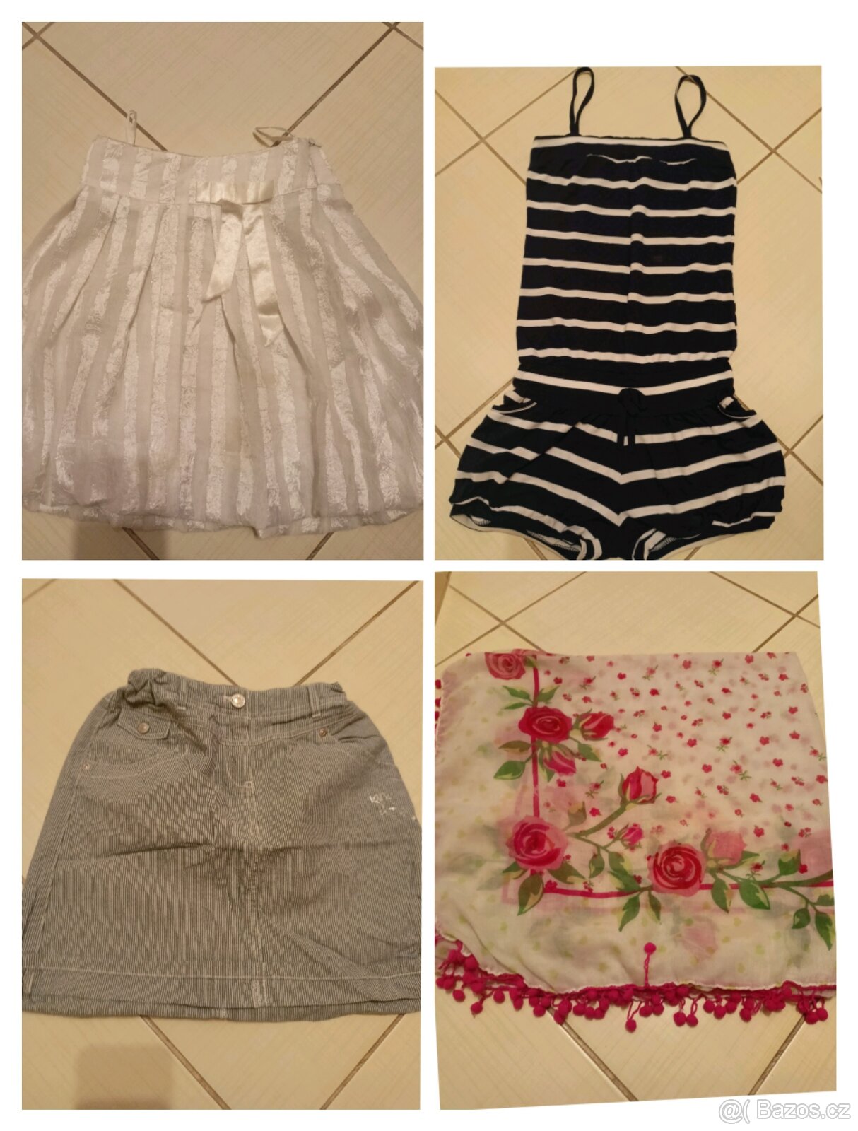 dívčí sukně 134-152 cm., overal pruhovaný, šátek