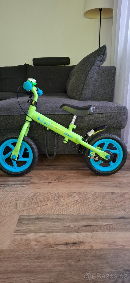 Velmi lehké, lehko ovladatelný, zadní brzda, výškově nastavitelné sedlo, zvonek. Cca od 2,5 let. Pár kosmetických vad, jinak super stav. Více informací ve foto. Při platbě předem mohu zaslat z práce, zdarma.
