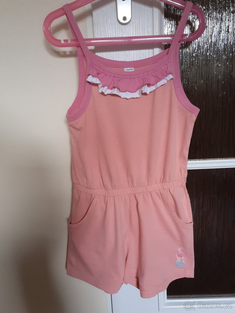 Prodám dívčí letní overal, vel.134/140, materiál 100% bavlna, délka 65 cm, v pasu 29 cm, 2 kapsy.
