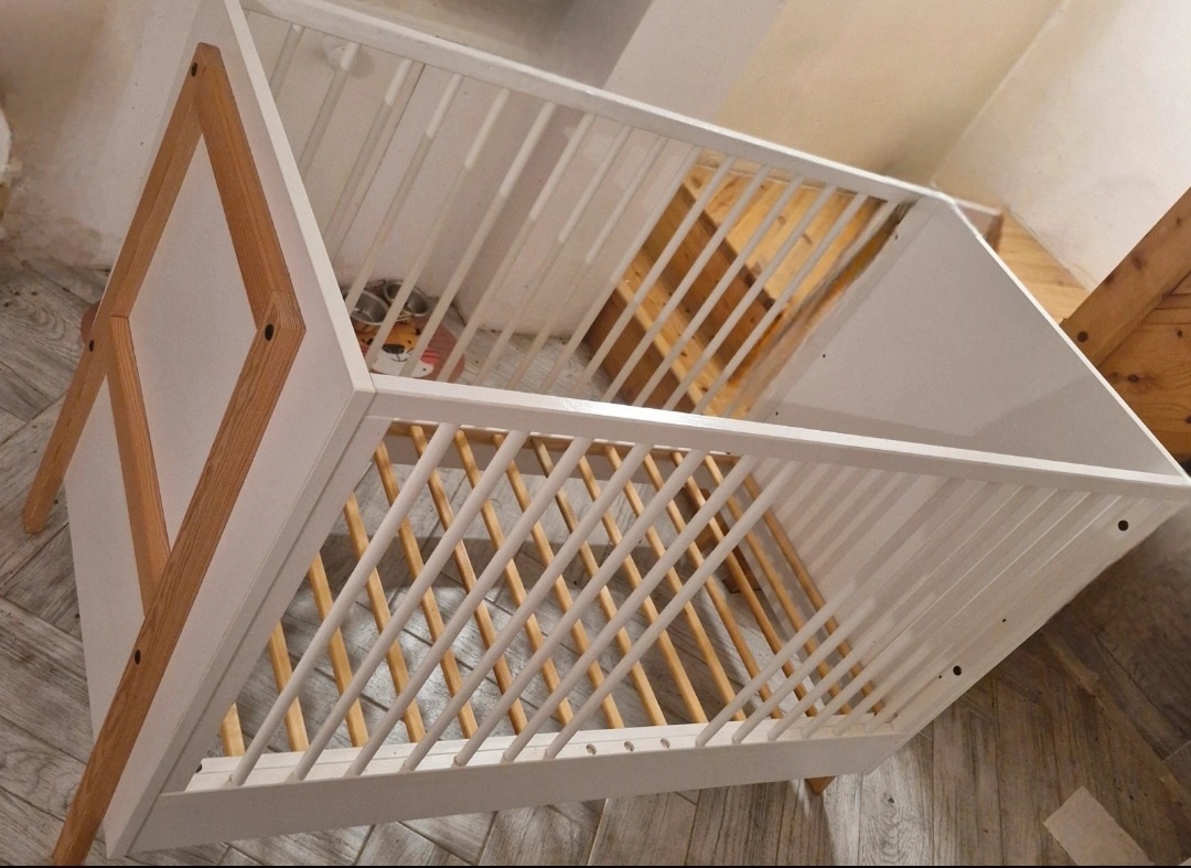 Prodám dětskou postýlku, bez vad, rošt lze dát do 3 poloh, odnímatelné 3 tyčky pro větší děti