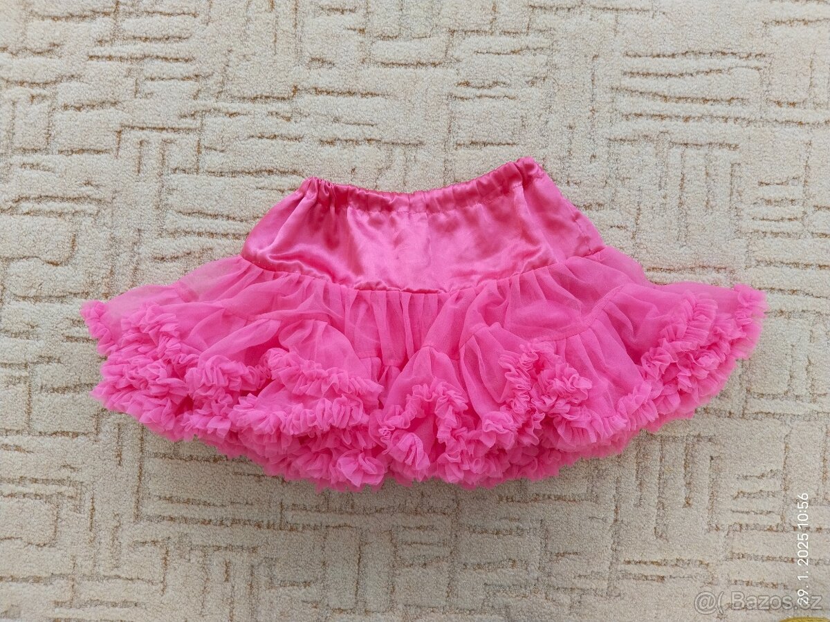 Růžová tylová tutu sukně vel.98 - [12.2. 2026]Krásná tylová tutu sukýnka, v pase do gumy a s regulací, mašlička, 100% polyester, 100% nylon. Uvedená velikost na štítku je dětská S. Uvádím vel.dle rozměrů, přesto prosím pečlivě měřte, děkuji.