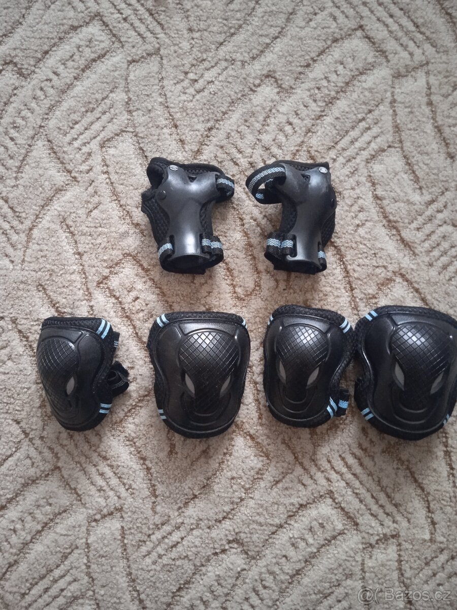 Chrániče v dobré stavu, na věk 6 až 10 let váha asi do 40 kg.Cena 100 Kč nebo zdarma ke kolečkovým bruslím.