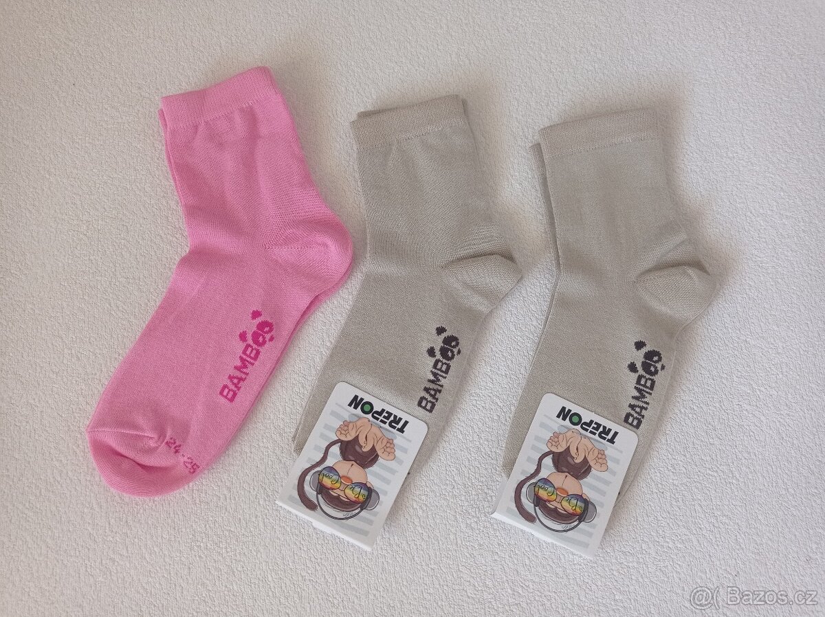 Nové bambusové ponožky Trepon, vel. 37-38 (24-25), růžové a 2x béžové. Cena za vše.