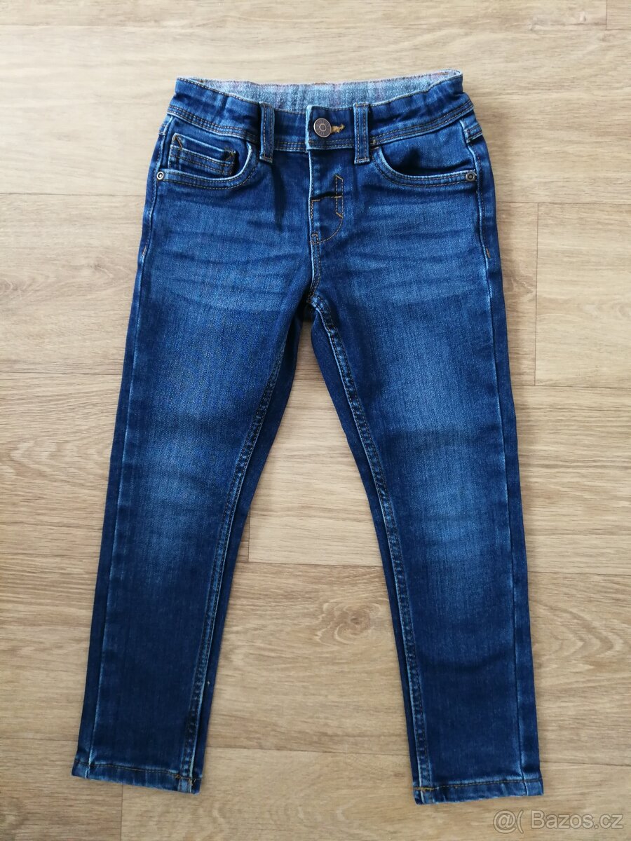 Krásné, nezničené. Zateplené flanelovou vrstvou, viz.foto se štítkem. Regulace v pase. Boční délka 64cm, od rozkroku 45cm.