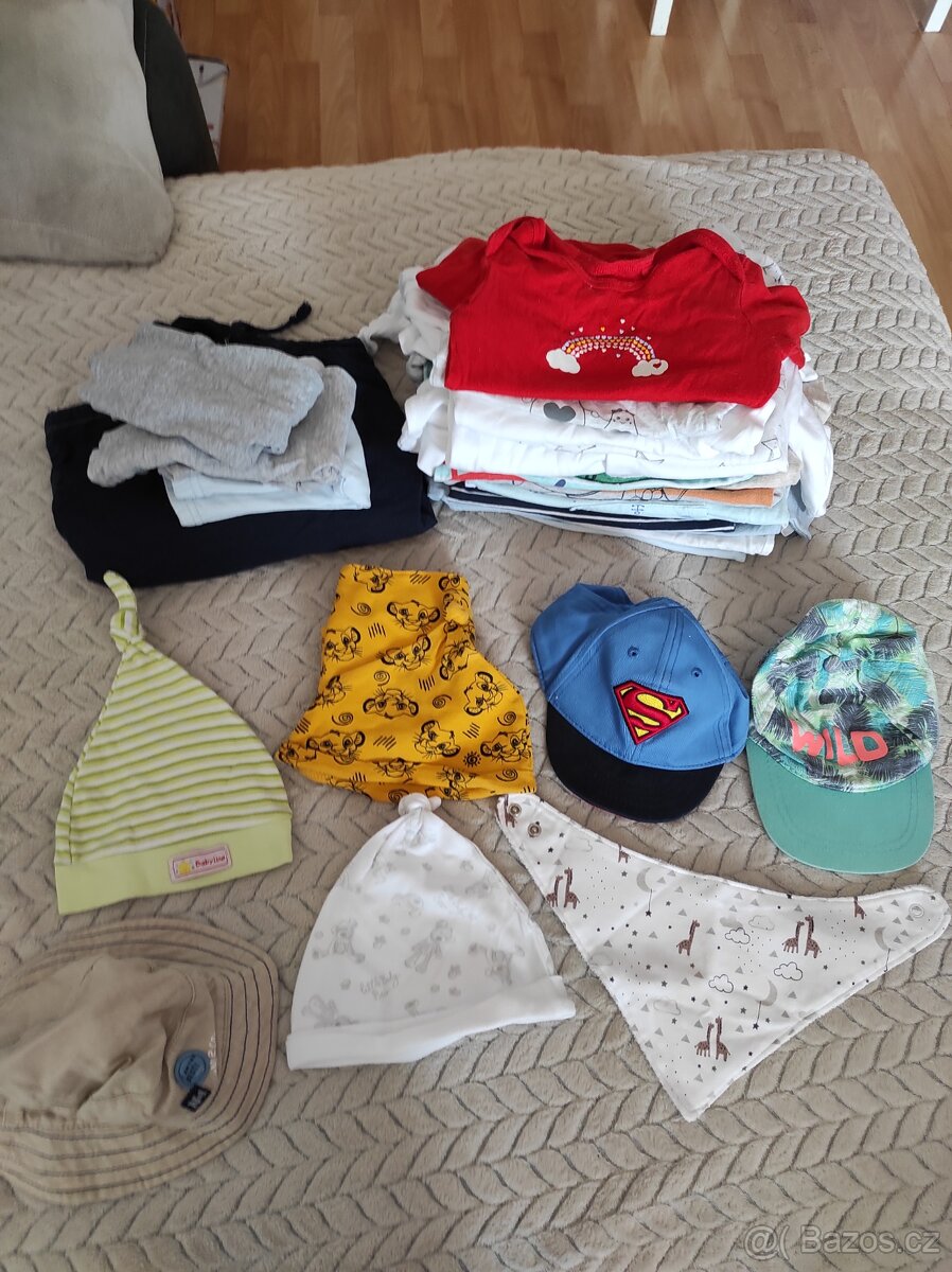 6xtriko,2x tílko,5x overal s kraťasy,2xkabatek, 2x pyzamko, 3x čepička,1xklobouk, 2xksiltovka, 1x slintacek, 3xleginy,3xbody,capáčky, cena za vse, osobní odběr Heřmanův Městec mohu i poslat přes zasilkovnu balikovnu
