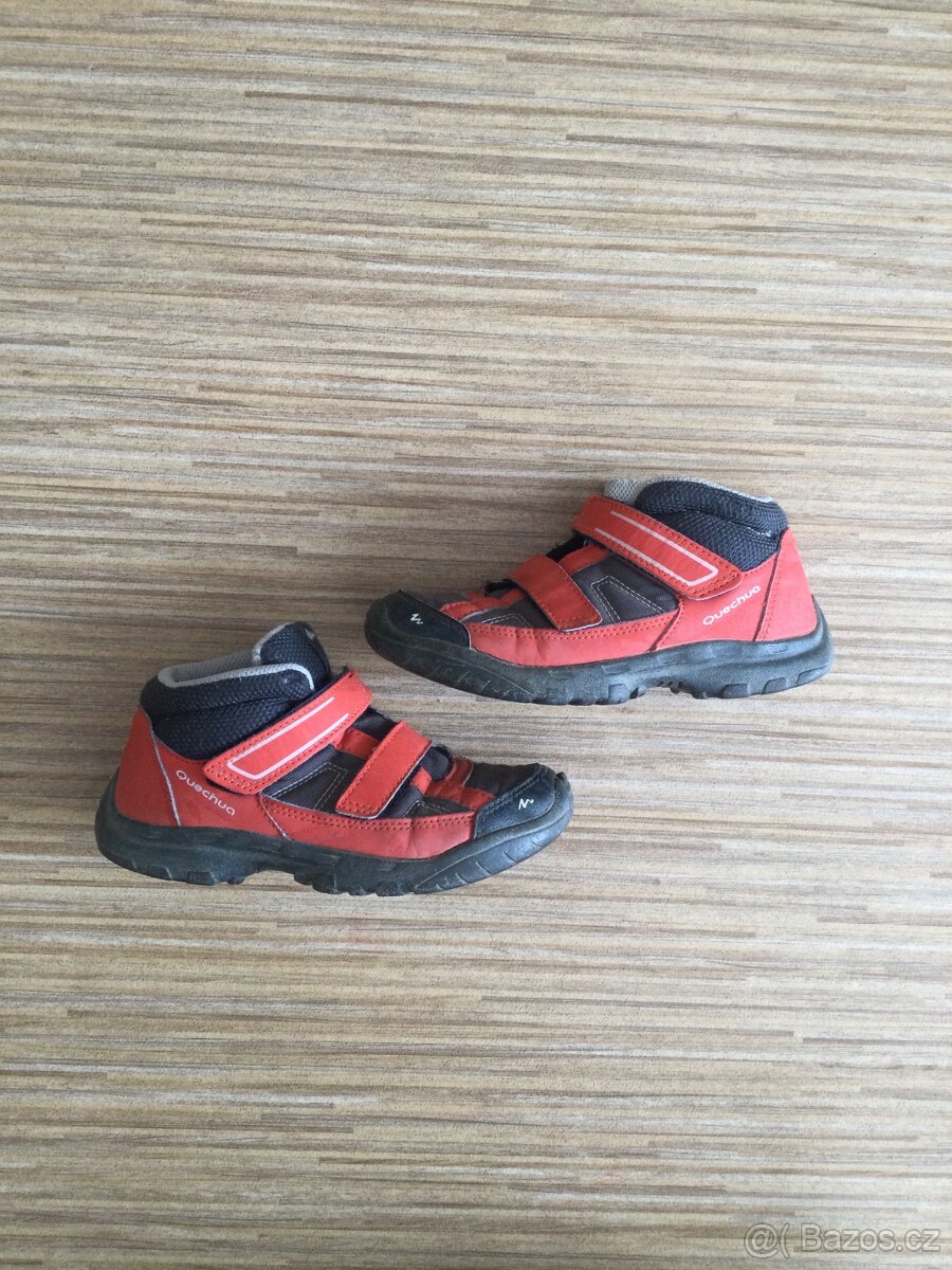 Prodám jarní kotníkové boty zn. Quechua ve vel. 31. Délka stélky je 19,5 cm. Jsou v pěkném nošeném stavu, podrážky v pořádku. Jen špička na jedné botě je mírně odchlípnutá viz foto. Není to nic hrozného a syn je nosil dlouho takto. Do školky nebo na lítačku ještě poslouží. Cena 79 Kč. Podívejte se také na mé další inzeráty