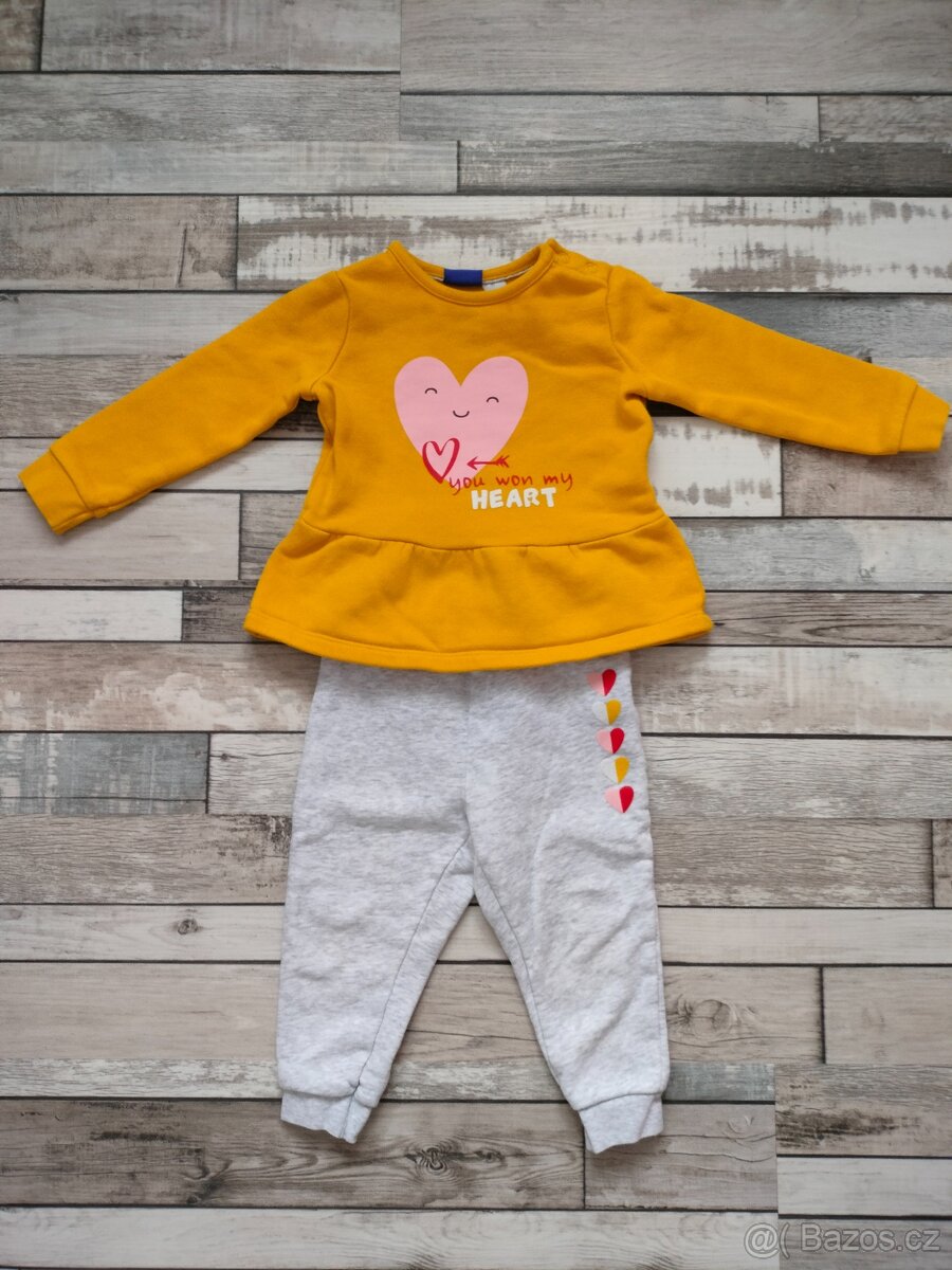 Prodám dívčí teplákovou soupravu Lupilu, velikost 74/80. Na mikině u krku flíčky - viz foto.