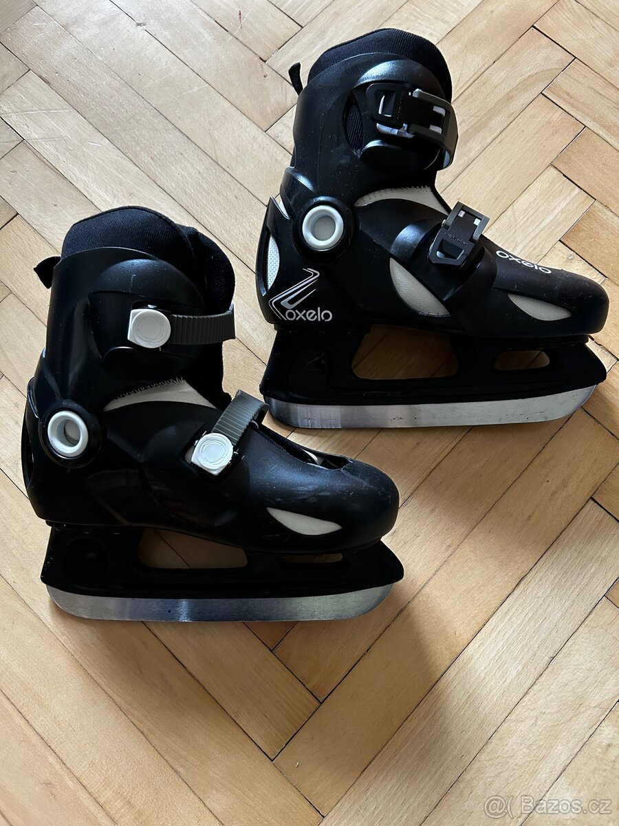 Prodám zachovalé dětské rostoucí lední brusle Oxelo vel. 34-36. Jen mírné známky používání.