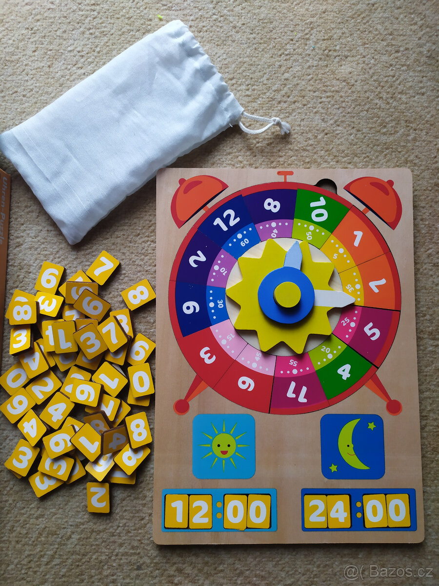 Nové nevyužité interaktivní dřevěné puzzle s hodinami, cena 150,-, cena 120,-, kniha Bob a Bobek, cena 120,-. Můžu i poslat.