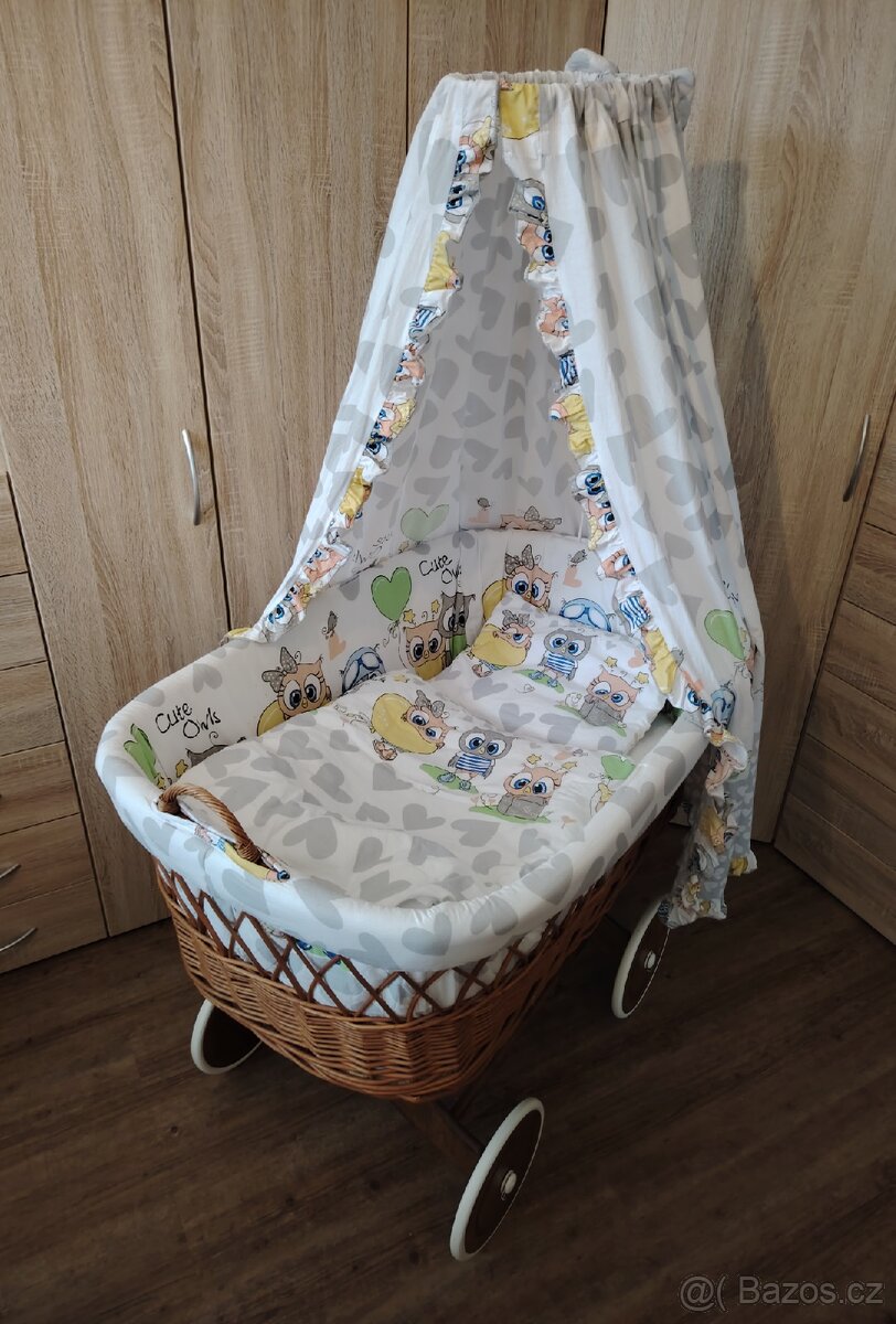 Košík pro miminko na kolečkách - [29.1. 2026]Prodám proutěný košík pro miminko v přírodní barvě ve výborném stavu, s běžnými drobnými známkami opotřebení. Součástí je kvalitní matrace značky Träumeland, ve velmi dobrém stavu s drobnými známkami běžného používání, dále návlečka na matraci, ochra ...