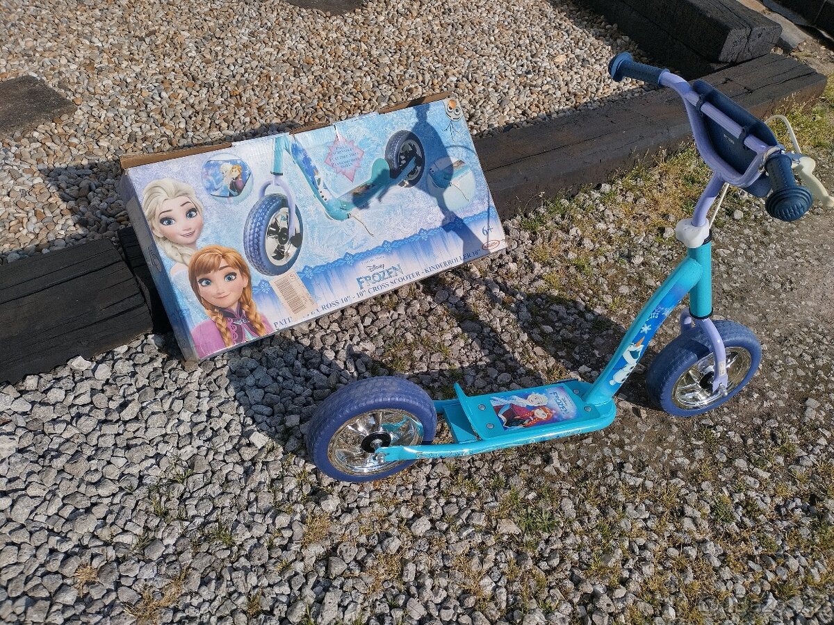 Prodám krásnou koloběžku Frozen ledové království (od 6 let dle krabice) použita pouze párkrát osobní odběr POUZE VOLAT