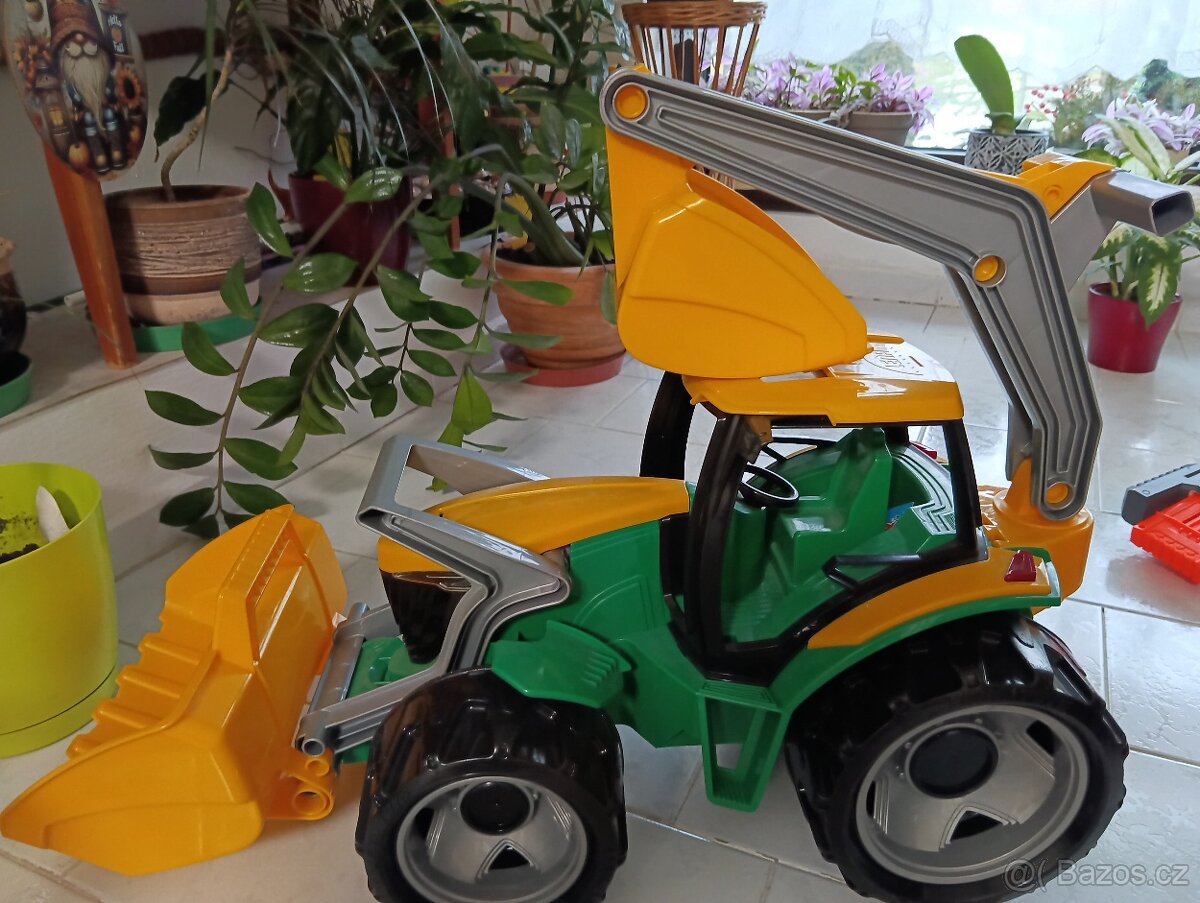 Traktor s návěsem - [13.2. 2026]Prodám velký celoplastový traktor s přední nakládací lžící i s návěsem (velikost: 100 x 35 cm), v zelené barvě za 399 Kč. Vše je nové.