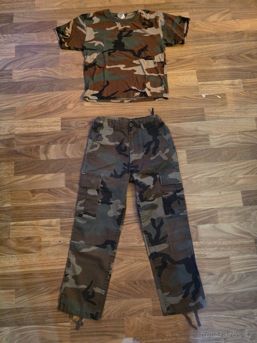 Prodam detske maskace, kalhoty + tricko. Vzor woodland. Nosene, ale jeste urco poslouzi