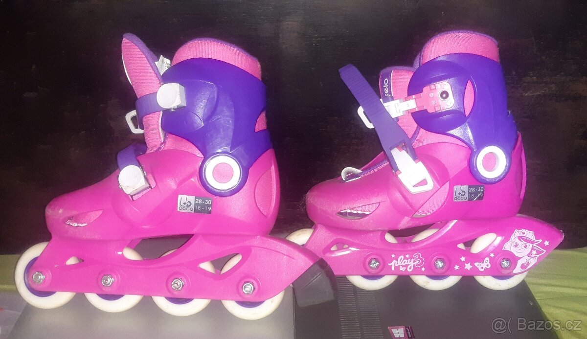 Dětské rostoucí kolečkové brusle - [10.2. 2026]Prodám kolečkové brusle s nastavitelnou délkou nohy. Viz foto. Cena 400.- Kč ,již po záruce . Doklad o koupi mám .