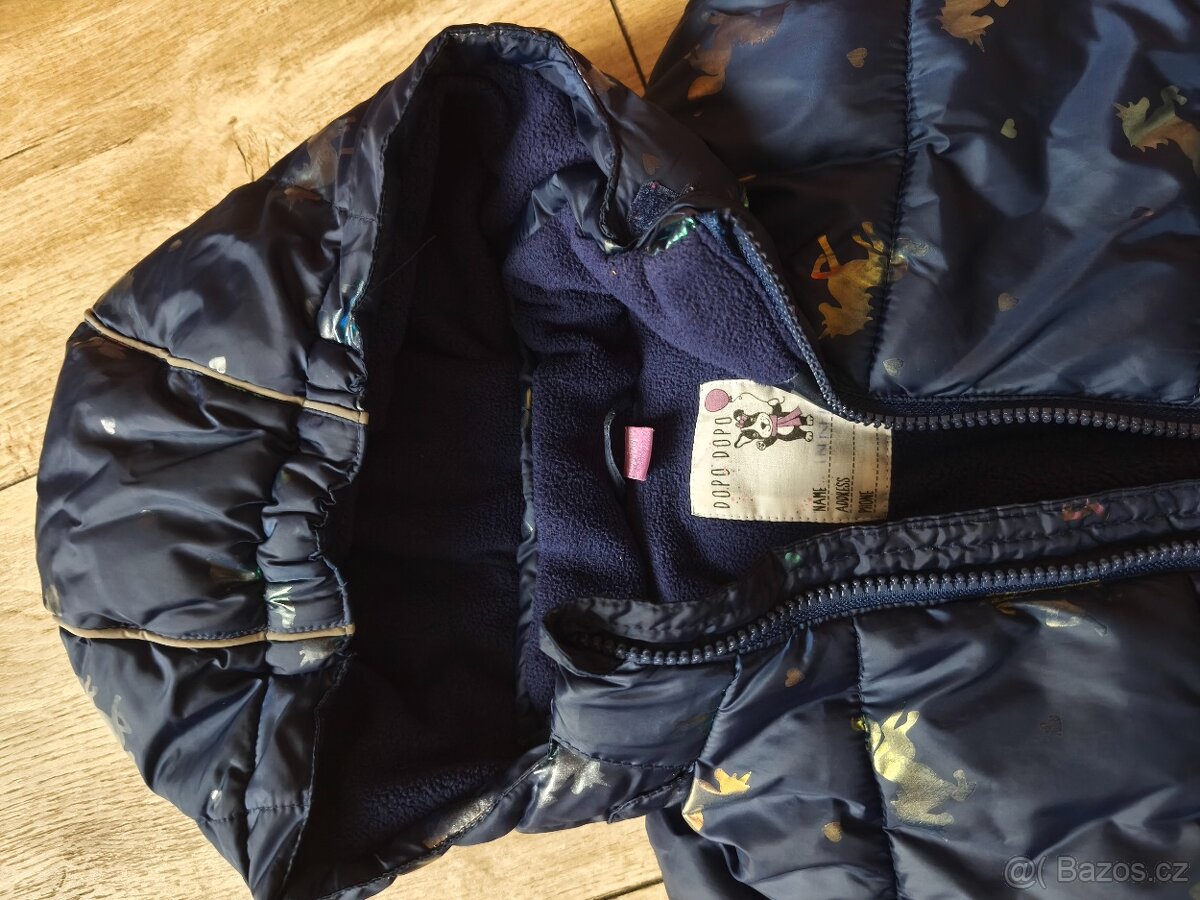 Dívčí zimní bunda vel. 116, 5-6 let. Potisk trochu sepraný.