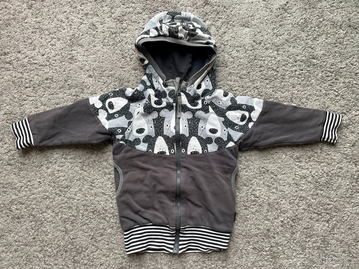 nošená, velmi pěkný stav, barva lehce vybledlá (jak už to u dupeta bývá). Bez vad. Velikost 92/98.
