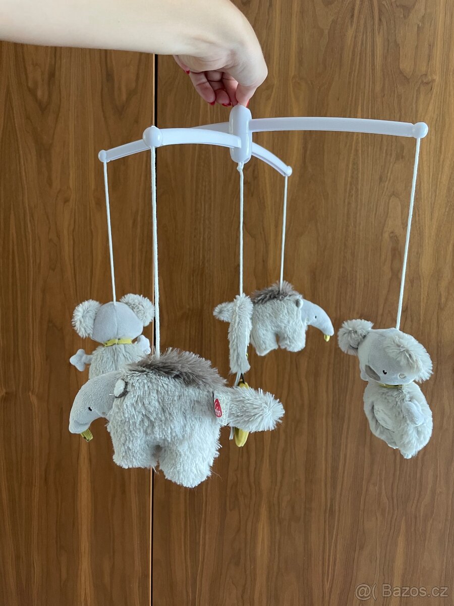 Kolotoč nad postýlku značky Fehn, použitý příležitost, ve velmi dobrém stavu - jako nový. Hračky lze odepnout a vyprat.