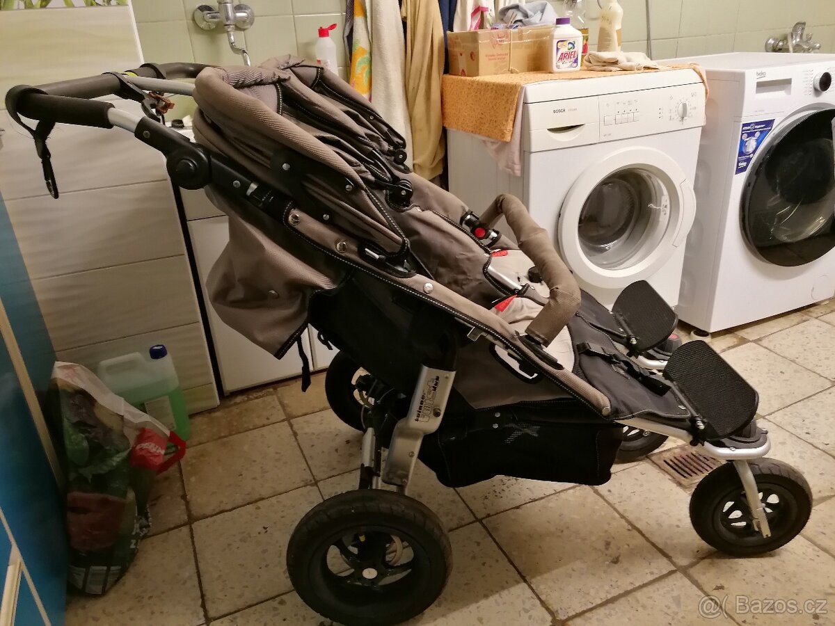 Prodám kočárek TFK pro dvojčata+příslušenství ke kočárku (nánožník, organizéry na madlo, podložky, prodloužení stříšky, pláštěnka) cena 4 tis