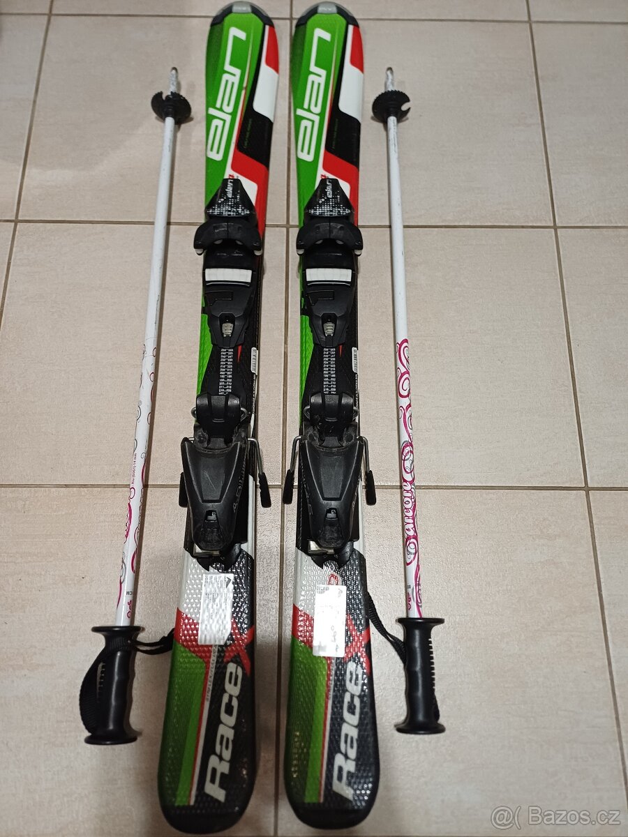 Prodám dětské lyže Elan 100 cm, hůlky 80 cm, 3xboty délka stélky 23-24cm, 22-23cm, 20-21cm.