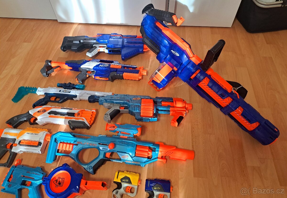 Syn prodává svou bohatou sbírku NERF zbraní, doplňků, zásobníků, taktické vesty, větší motorové pušky, středně velkých pušek, menších pistolí, atd. Vše v dobrém, funkčním stavu.