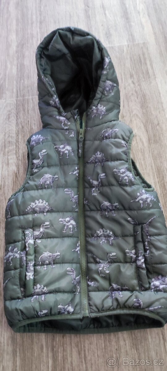Dětská zelená khaki vesta vhodná na podzim i na zimu, velikost 128, odpovídá 5-6let značky little kids