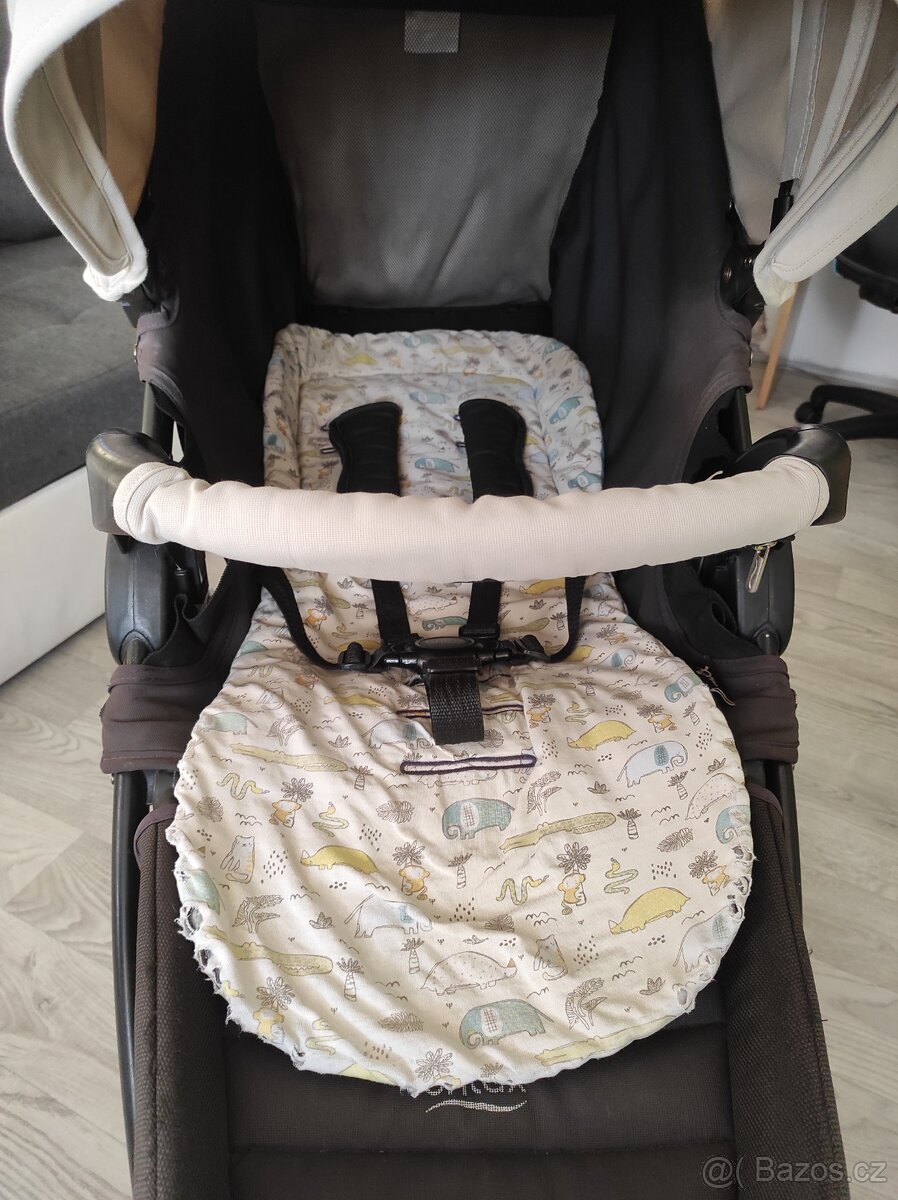 Prodám kočárek.Přidam k tomu pláštěnku proti dešti, oboustrannou podložka,jediná vada černá čárka na stříšce.Poprípade dám slevu.