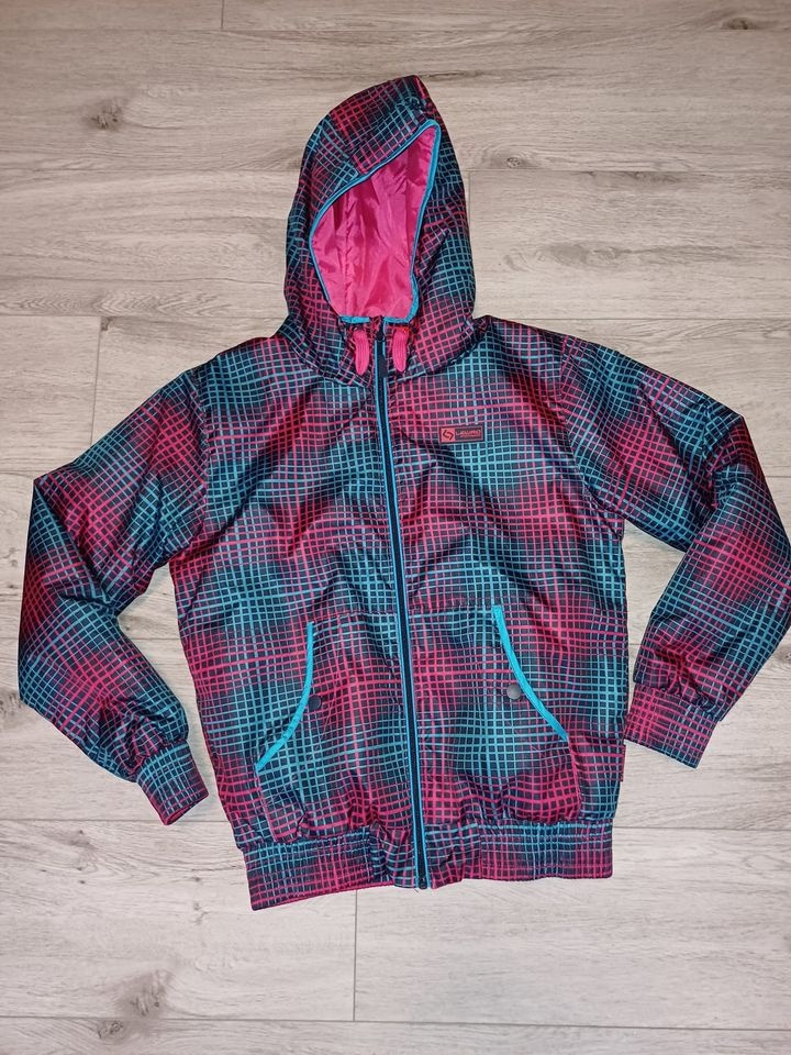Téměř nová, dcerou velmi málo nošená bunda, v pase na gumu, 2 kapsy na patent, s neodnímatelnou kapucí, bez vady. Kupovaná nová ve Sportisimu