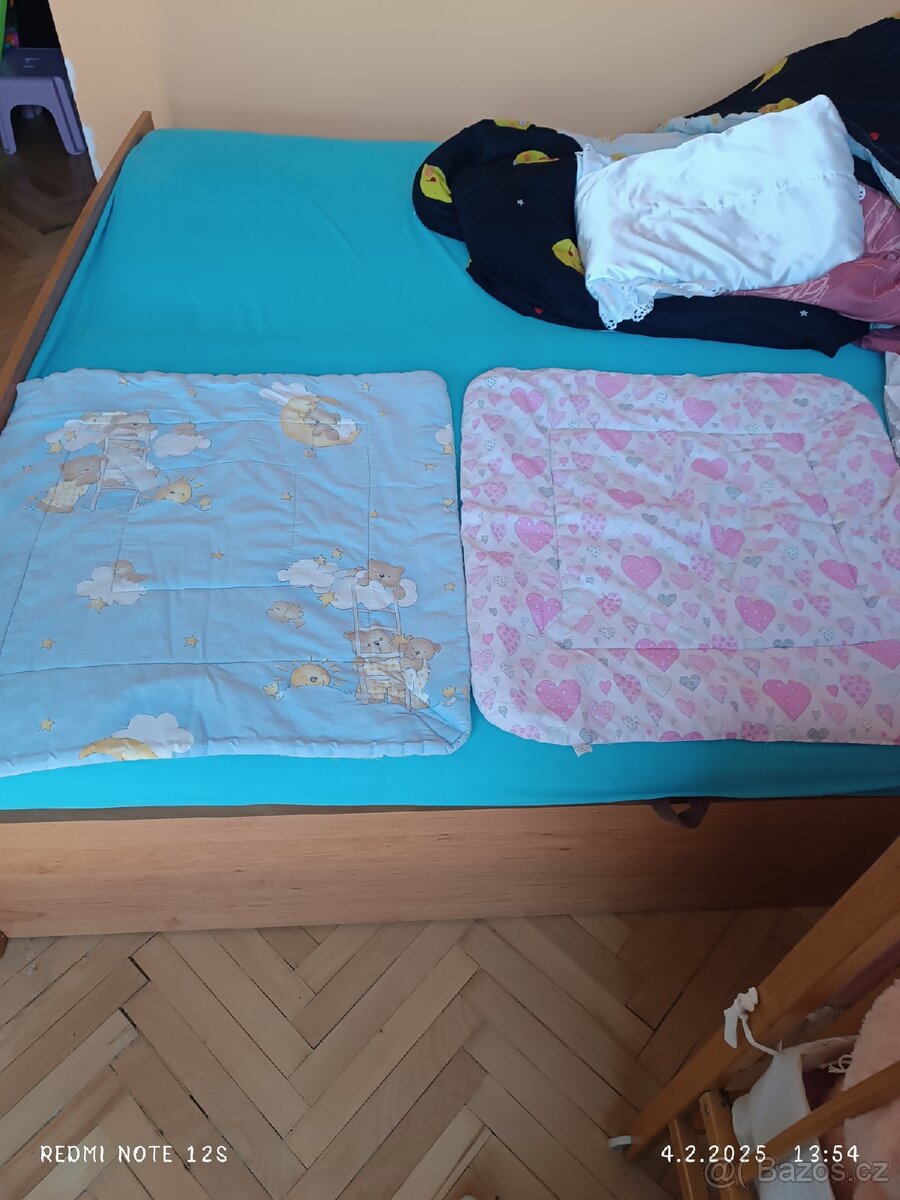 Zavinovačky - [28.1. 2026]Péřová zavinovačka zn. Peří Mareš, rozměry postranní délky 60x63 cm, od cípu k cípu 80 cm. K tomu ručně šitý potah na míru, bavlněný. Cena 200 Kč.