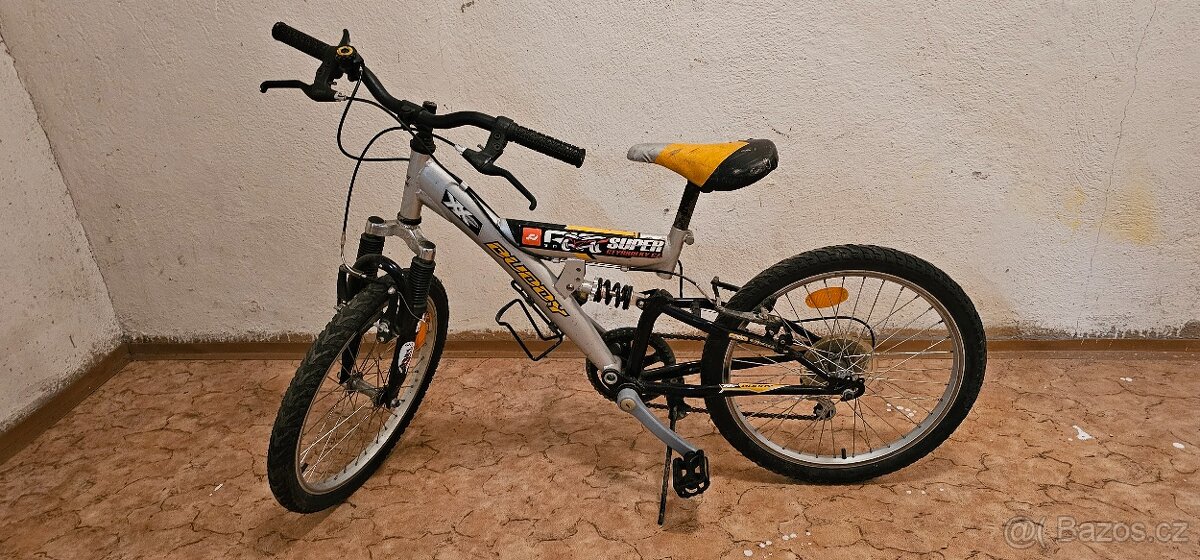 Celoodpružené dětské kolo s přehazovačkou, velikost 20". Má kosmetické vady, sedátko potrhané, ale jinak je zcela funkční, po servisu.