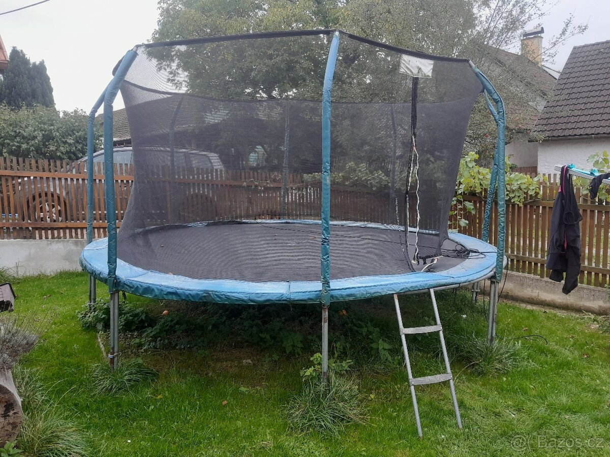 Trampolína - [26.1. 2026]Prodám používanou, funkční trampolínu, která ještě nějakou dobu může sloužit. Ve skákací síti je menší díra, které se zatím nezvětšuje, ale je dobré ji sledovat. Je tam už 2 sezony. Viz foto. Ochranná síť je nepotrhaná, jen je rozbitý zip. Návleky na ...