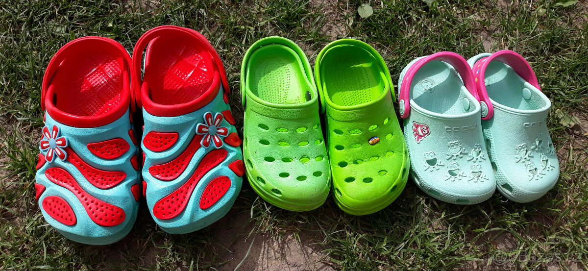 Dětské kroksy Coqui vel. 23/24 (prodány), zelené kroksy vel. 24/25, cena 80,- a kroksy s kytkami vel. 31, cena 90,-. Osobní odběr Praha 4. Zaslání přes Zásilkovnu, nebo Balíkovnu.