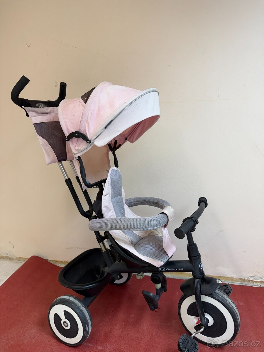 Růžová tříkolka Kinderkraft pro děti - [24.12. 2025]Výborný stav, odnímatelná stříška, 3-bodový pas, přihrádka na pití, odepínatelná kapsa, úložná přihrádka vepředupro dítě, zvoneček. Lze částečně rozložit do auta, případně odejmout část kontrukce, aby zbyla jen tříkolka bez vodicího držadla.