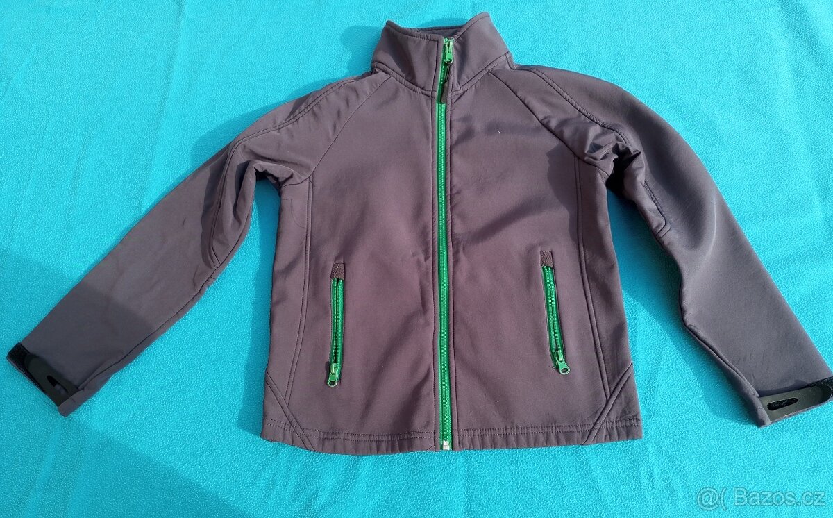 Softshellová bunda vel. 150 - [1.2. 2026]Prodám softshellovou bundu vel.150 tmavě šedá se žluto-modrými ornamenty.