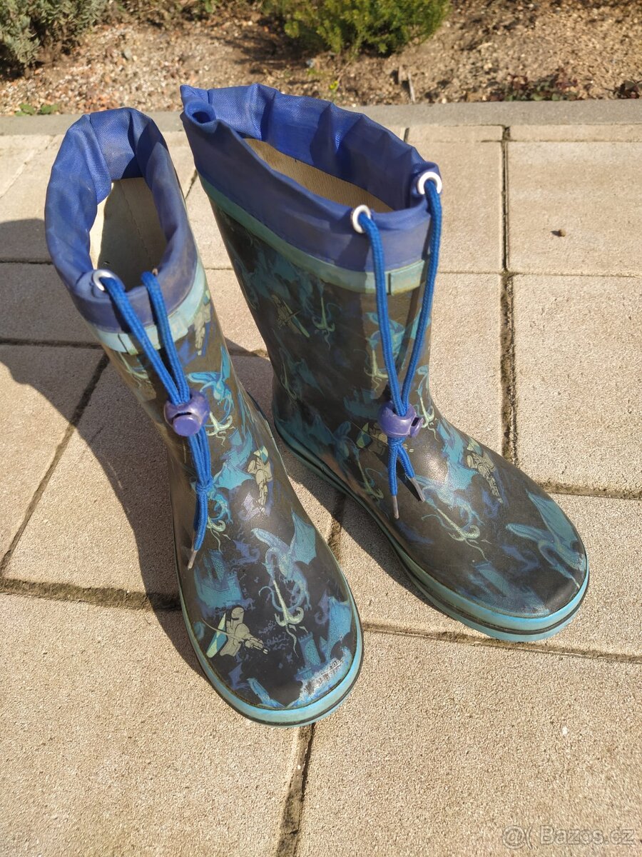 Prodám pár dětských černo-modrých nošených holínek o velikosti 31.