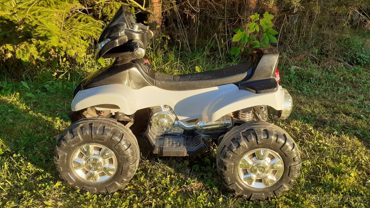 Dětská čtyřkolka Toyz. Cuatro je poháněn motorem o výkonu 20W. Jedna baterie s celkovou kapacitou až 6V/4,5 Ah. Baterie se jednoduše nabíjí nabíječkou. Tato konfigurace umožňuje hru až 2 hodiny na jedno nabití. Rýchlost jízdy do 6km/h.