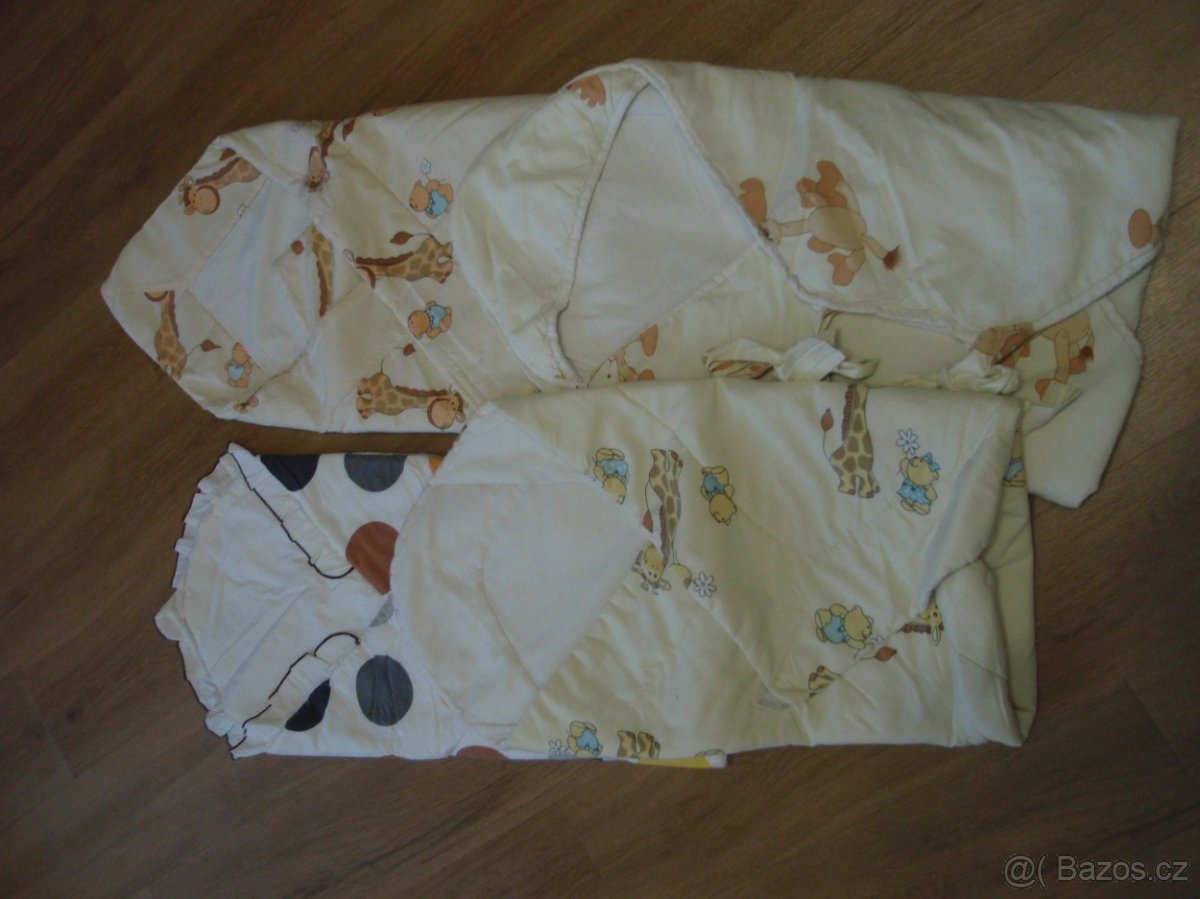 Zavinovačky 2 ks - [2.2. 2026]Nabízím 2 zavinovačky o rozměrech 72 x 72 cm. Obě mají suchý zip. První s potiskem koaly je z druhé strany bílá. Druhá má potisk medvídka z obou stran.