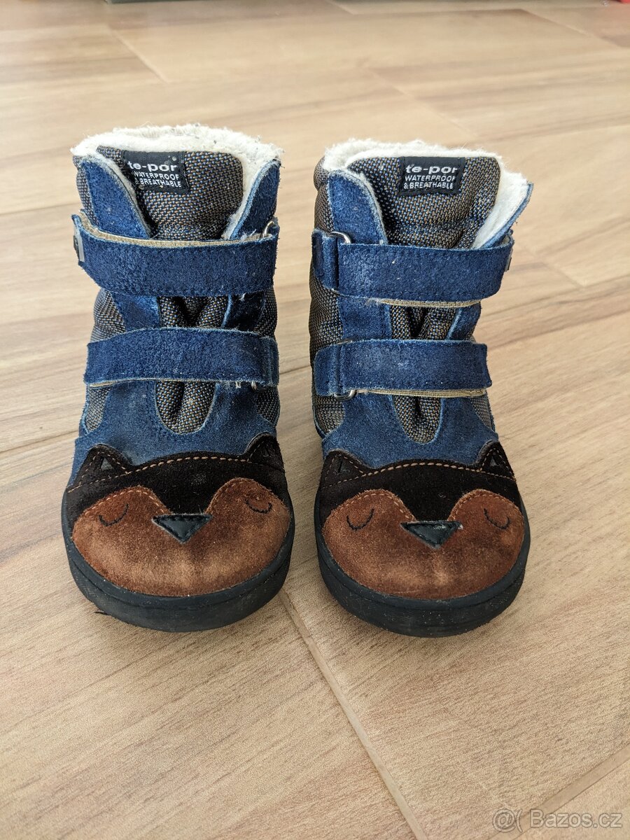 Dětské zimní boty KTR 315 Sova modrá VLNA. Vnitřní délka boty 16,3 cm, stélka není vyjímatelná. Po jednom dítěti, nošeny jednu zimu. Zateplené pravou ovčí vlnou. Boty jsou vyšší, končí cca 3cm nad kotníkem. Mají membránu Te-Por, díky které jsou nepromokavé a prodyšné zároveň. Boty jsou v přední části širší a mají dostatek prostoru pro prsty. Vhodné pro normálně široké a širší nožky, vhodné i pro vyšší nárt. Osobní odběr Mladá Boleslav nebo zaslání přes zasilkovnu + 79 Kč.