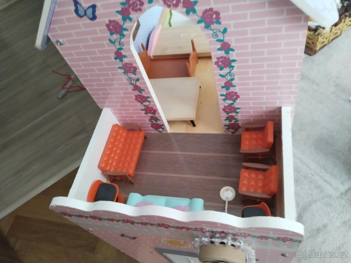 Dřevěný domeček pro panenky XXL Lidl vč. doplňků,které jsou v hodnotě Stabilní dřevěná konstrukce s velkými plochami na hraní