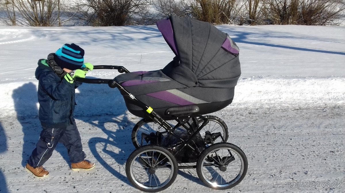 Prodám kočárek po dvou dětech. Šedo fialový.