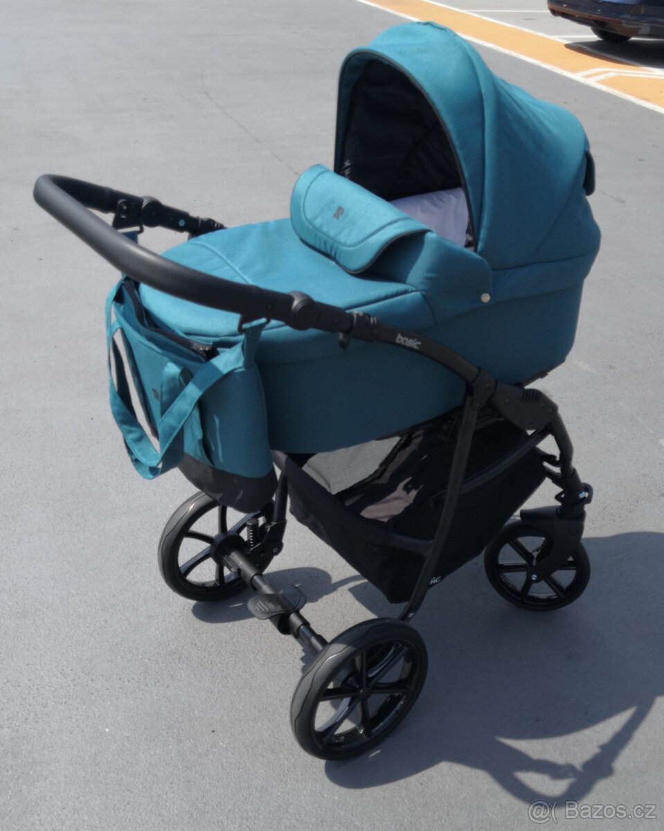 Prodám kočárek značky Riko Basic 2v1 barvy lagoon. Kočárek je po jednom dítěti a má běžná opotřebení vlivem užívání viz. poslední dvě fotky.