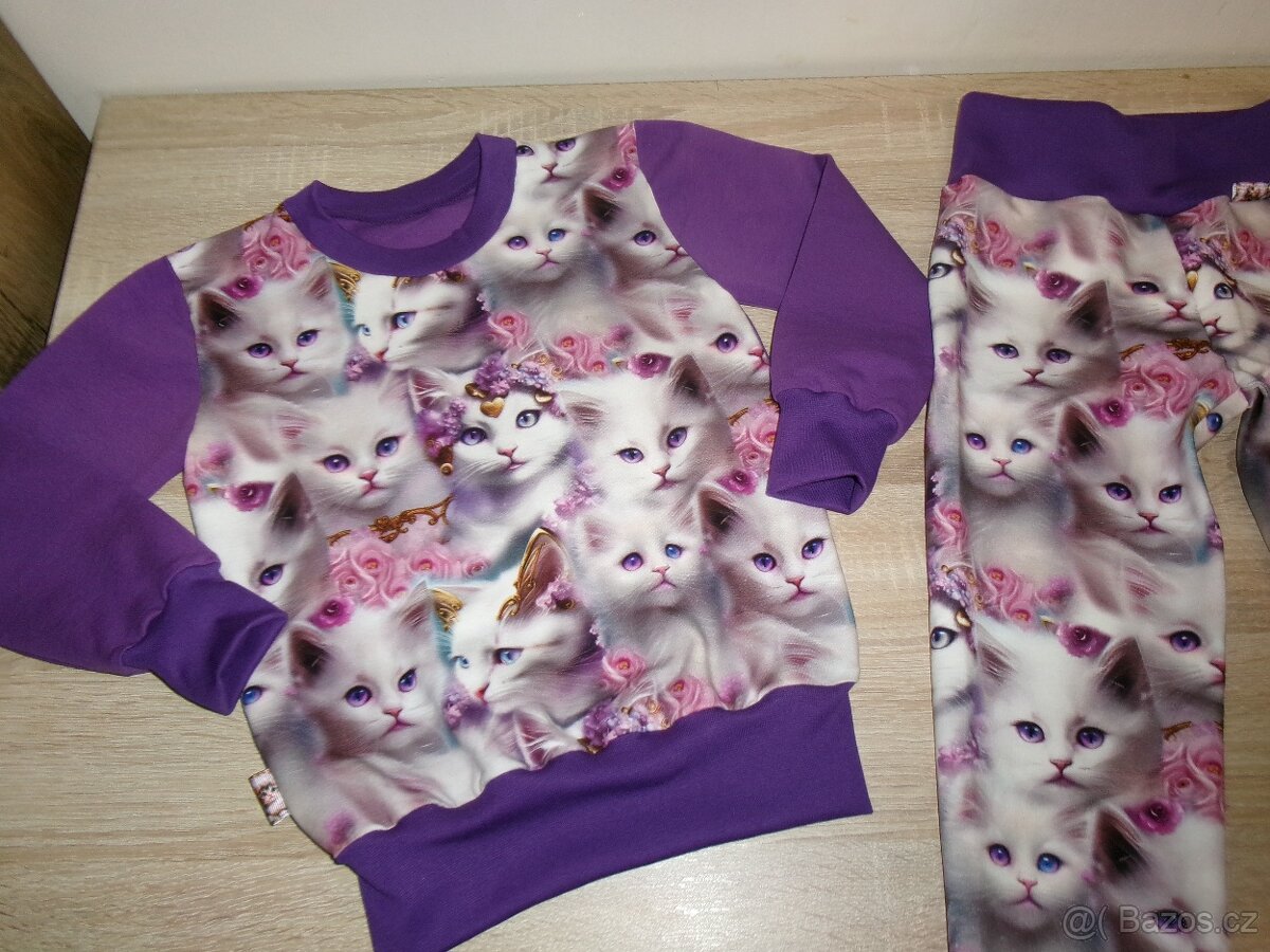 Nádherná nová tepláková souprava kočičky vel.110 délka tepláků 62cm krásný dárek pro malou parádnici