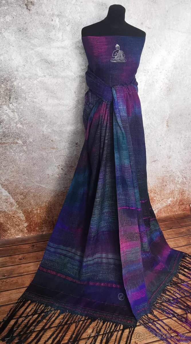 Prodám jedinečný hedvábný šátek pro nošení miminka, délka 4,95m (ještě se krásně pronese). S jemnou výšivkou Buddhy a symbolem Jin & Jang, který přináší nekonečný relax pro mámy i miminka.