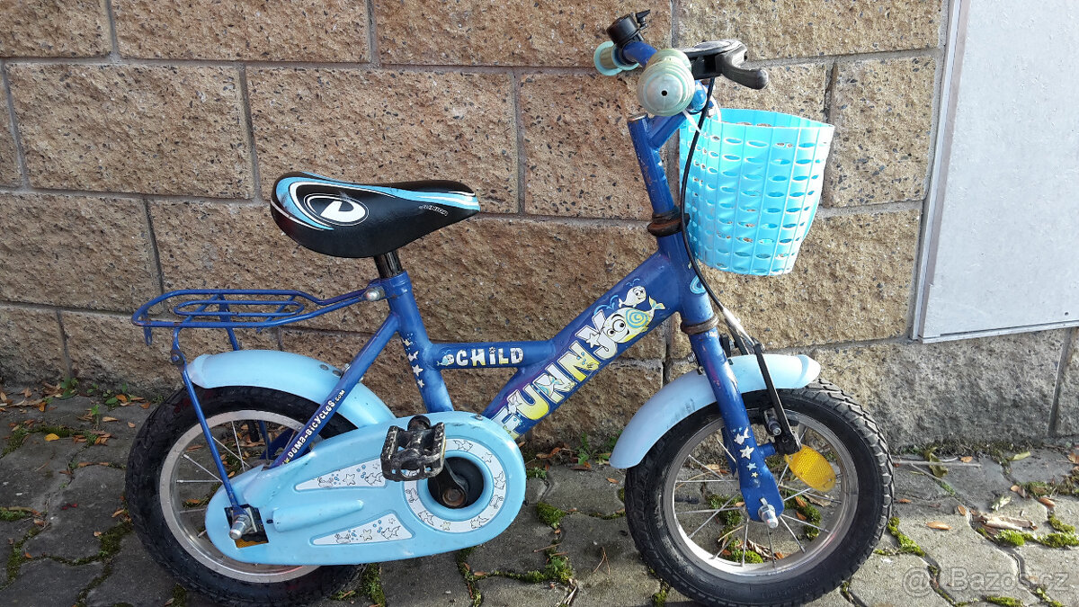 Prodám dětské kolo 8". Nějaký čas na něm dítě jezdilo; jsou na něm drobné oděrky a známky běžného používání.